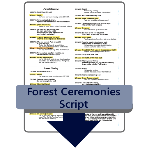 This is the script for the Forest Opening and Closing ceremonies. The parts the kids are supposed to say are highlighted to help them follow along.