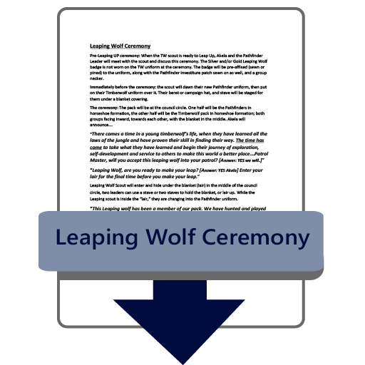 When your Timberwolf has earned their Golden Leaping Wolf and is ready to move up to Pathfinders, you can use this ceremony. It is a cute, theatrical way to celebrate the hard work and effort the Timberwolf has put forth into continuing their scouting journey.